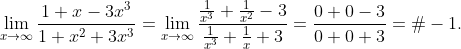 Помогите пожалуйста решить lim_{x->бесконечность} (1+x-3x^3)/(1+x^2+3x^3)