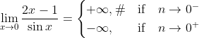 Цитата: ser919 написал 23 нояб. 2009 13:04 lim->0 2x-1 / sinx Спасибо большое за раннее.