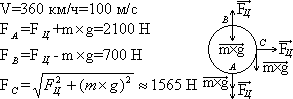 Условие задачи:Самолет делает «мертвую петлю» радиуса R = 500 м с постоянной скоростью v = 360 км/ч. Найти вес летчика массы m = 70 кг в нижней, верхней и средней точках петли.