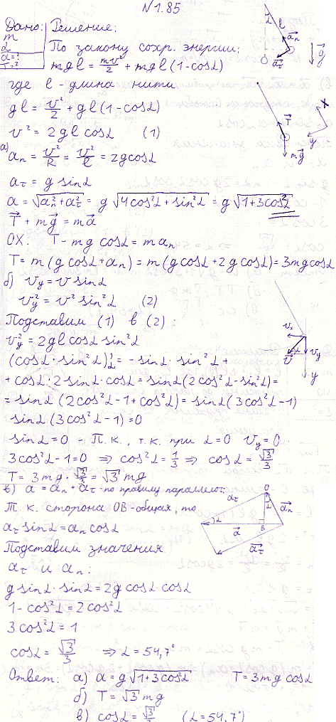 Физика → Часть 1. Физические основы механики → 1.2. Основное уравнение динамики → Задача № 1.85(И.Е. Иродов. Задачи по общей физике - скачать весь задачник в DjVu, 3,5 Мб)