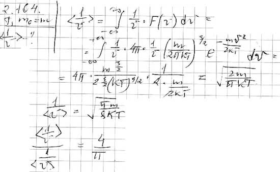Условие задачи:Воспользовавшись распределением Максвелла, найти <1/v> — среднее значение обратной скорости молекул идеального газа, находящегося при температуре Т, если масса каждой молекулы m. Сравнить полученную величину с обратной величиной средней скорости.