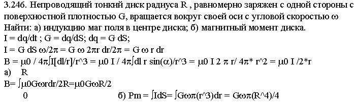 Условие задачи:Непроводящий тонкий диск радиуса R, равномерно заряженный с одной стороны с поверхностной плотностью σ, вращается вокруг своей оси с угловой скоростью ω. Найти:а) индукцию магнитного поля в центре диска; б) магнитный момент диска.