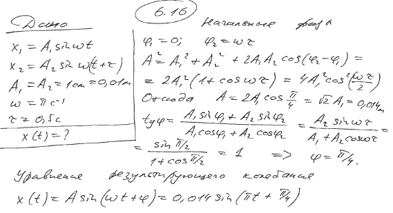 Решебник по физике → Чертов, Воробьев → Глава 1. Физические основы механики → § 6. Механические колебания → Задача № 6.16(Чертов А. Г., Воробьев А. А. Задачник по физике - скачать весь задачник в DjVu, 9,3 Мб)