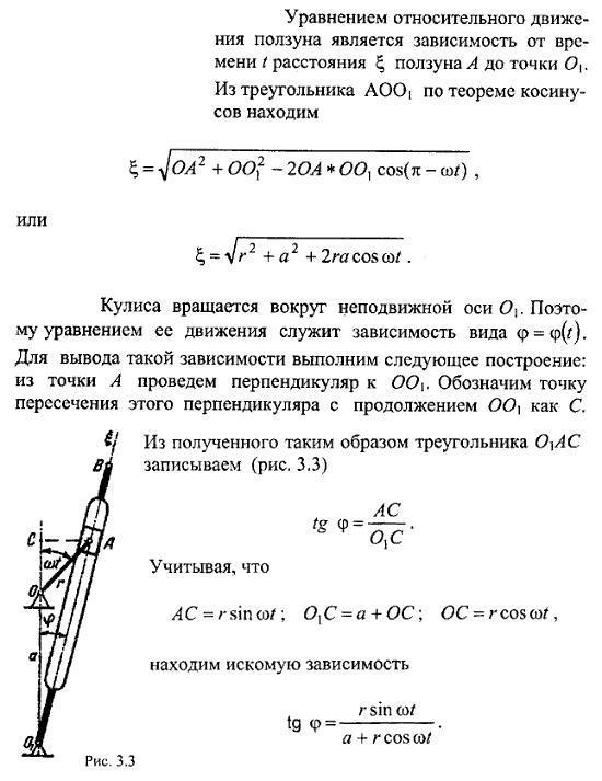 Решение задачи 21.13 из сборника Мещерского по теоретической механике(Физика → Термех → Решебник Мещерского → Сложное движение точки → Уравнения движений точки) Условие задачиУскорительный механизм строгального станка состоит из двух параллельных валов O и O1, кривошипа OA и кулисы O1B. Конец кривошипа OA соединен шарнирно с ползуном, скользящим вдоль прорези в кулисе O1B. Найти уравнение относительного движения ползуна в прорези кулисы и уравнение вращения самой кулисы, если кривошип OA длины r вращается с постоянной угловой скоростью ω, расстояние между осями валов OO1=a. |