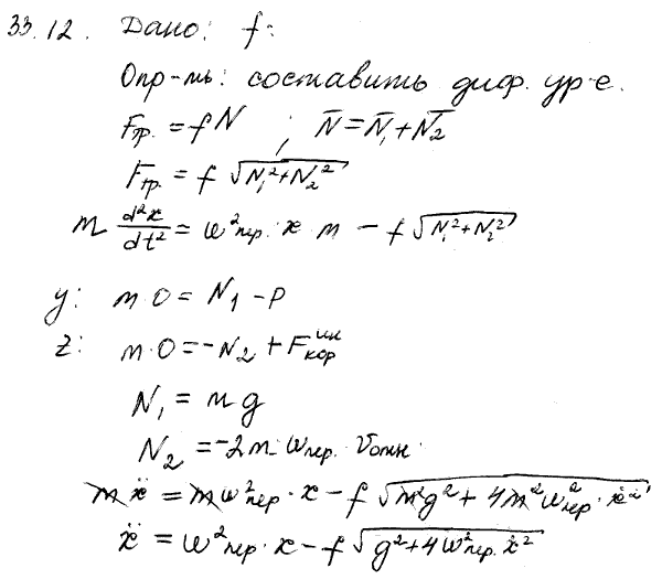 Решение задачи 33.12 из сборника Мещерского по теоретической механике(Физика → Термех → Решебник Мещерского → Динамика материальной точки → Относительное движение) Условие задачиВ условиях задачи 33.10 составить дифференциальное уравнение движения тела в трубке, если коэффициент трения скольжения между телом и трубкой равен f. |