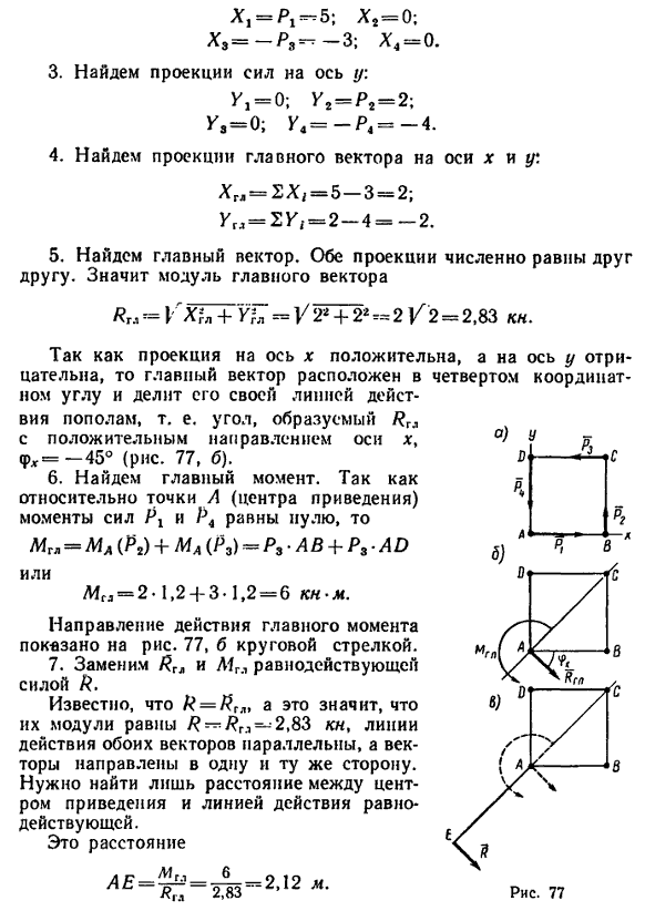 1. За центр приведения примем точку А. Оси координат совместим со сторонами АВ и AD квадрата ABCD (рис. 77, а).