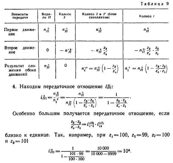 Следовательно, простая планетарная передача, состоящая всего из четырех колес, уменьшает угловую скорость в 10 тысяч раз.