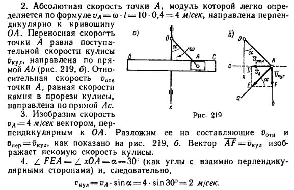 б) относительного движения точки А вместе с камнем, движущимся возвратно-поступательно в прорези кулисы в направлении, перпендикулярном к оси х.