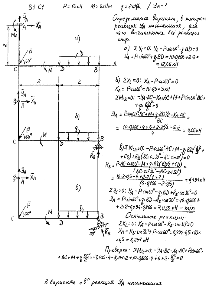 Задание С.1. Определение реакций опор твердого тела (к условию задания)