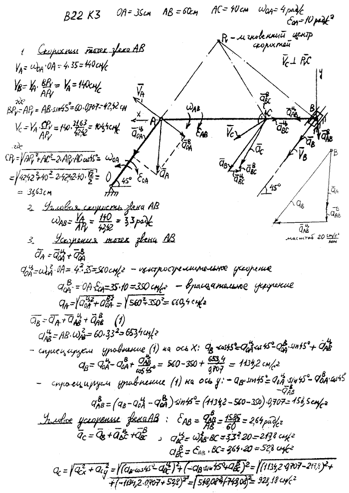Задание К.3. Кинематический анализ плоского механизма (к условию задания)