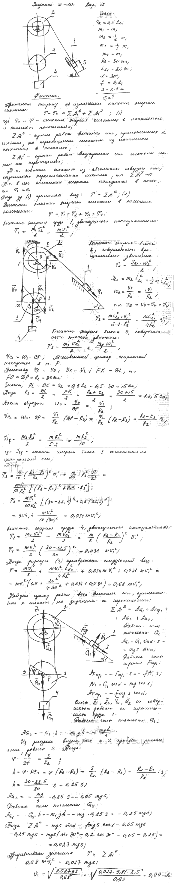Бесплатный решебник Яблонского: Д.10 вариант 12(Физика → Теоретическая механика → Решебник Яблонского → Динамика механической системы) Задание Д.10. Применение теоремы об изменении кинетической энергии к изучению движения механической системы (к условию задания) |