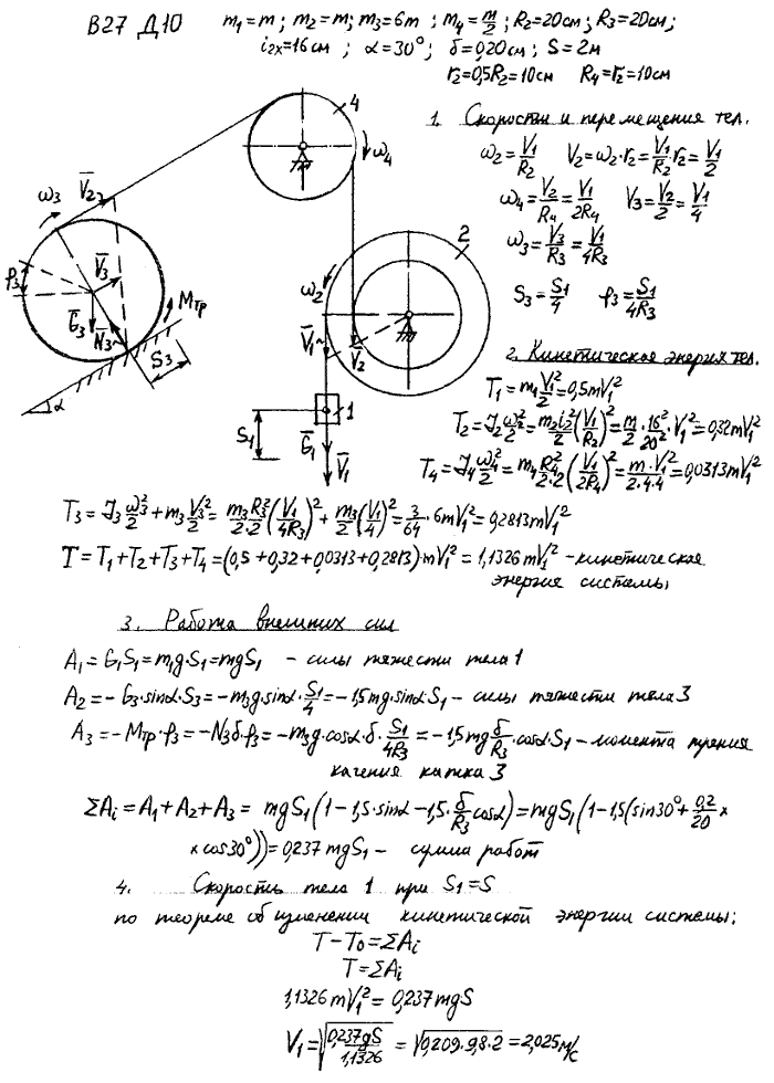 Бесплатный решебник Яблонского: Д.10 вариант 27(Физика → Теоретическая механика → Решебник Яблонского → Динамика механической системы) Задание Д.10. Применение теоремы об изменении кинетической энергии к изучению движения механической системы (к условию задания) |