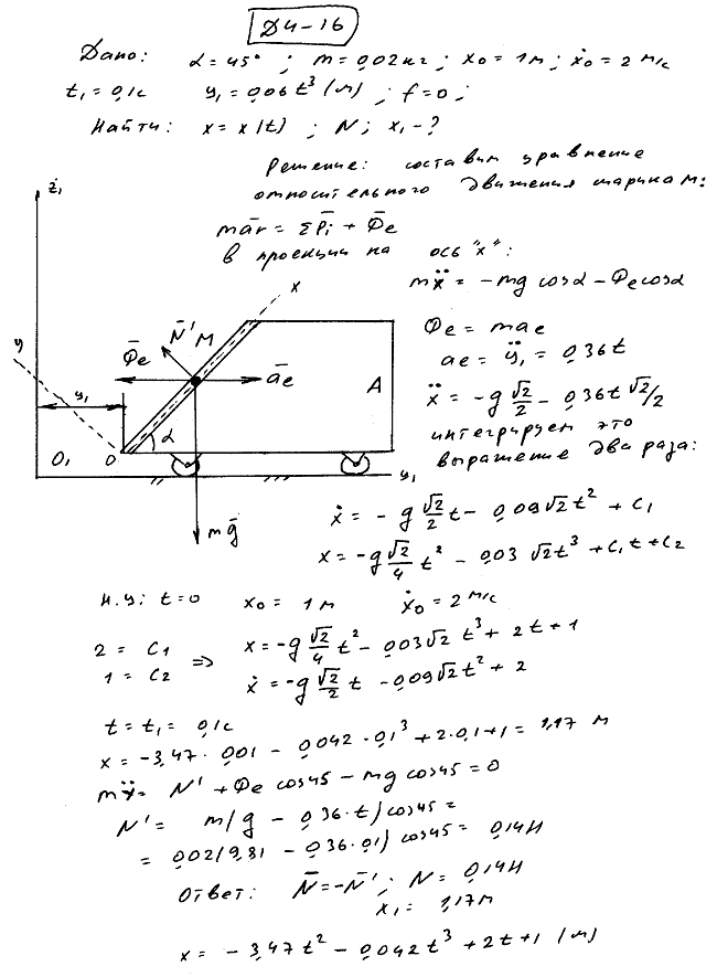 Задание Д.4. Исследование относительного движения материальной точки (к условию задания)